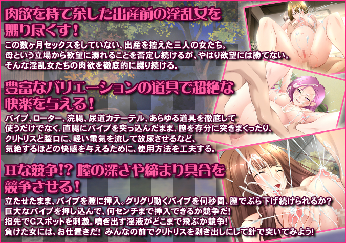 僕は、とある田舎町の温泉旅館の6代目跡取り。 父が他界し、今は母が切り盛りしているが、 不景気な昨今、田舎の温泉宿は閑古鳥が鳴いていた。 そこで、母が一念発起! 結婚前に産婦人科の医師をしていた経験を生かして、 『温泉でゆったり。静かな山奥で赤ちゃんを産もう!』 という企画をぶちあげ評判を呼び、旅館は活気を見せるように。 そして今日も、三人連れのお客さんが宿屋に来て……。 |
